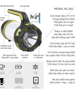 Đèn pin cầm tay siêu sáng HC 261 chiếu xa 650 mét sạc ngược cho điện thoại Đèn dã ngoại Đèn cầm tay Đèn cắm trại GD209