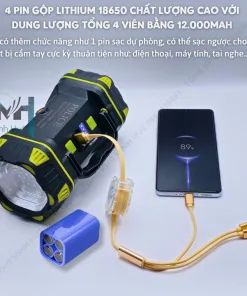 ✔ Đèn tích hợp chức năng sạc ngược cho điện thoại cực kỳ thuận tiện cho những ai sử đụng đèn để đem đi cắm trại hoặc mạo hiểm dài ngày.
