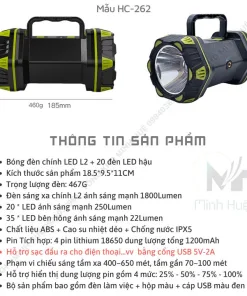✔ Đèn pin cầm tay HC 262 được thiết kế để sử dụng mạnh nên có kết cấu đèn cực kỳ chắc chắn với thân đèn được làm từ ABS cao cấp và 2 đầu đèn được bảo vệ bằng 2 lớp cao su nhiệt dẻo chống va đập cực kỳ tốt…kèm theo đó, đèn có chức năng chống nước IPX5 nên mọi người có thể thoải mái sử dụng và đi mưa mà không sợ hỏng đèn.