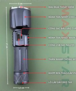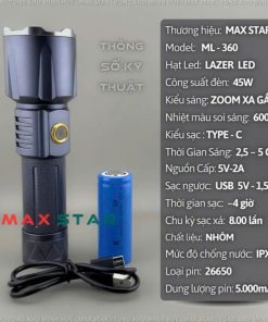 ĐÈN PIN CẦM TAY SIÊU SÁNG MAXSTAR ML360 CHIP LED XHP360 SIÊU SÁNG MẠNH 45W ZOOM XA GẦN SẠC NGƯỢC CHO ĐIỆN THOẠI GD237