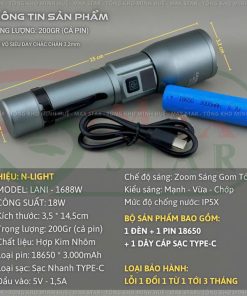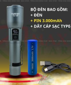 Đèn pin cầm tay siêu sáng mini LANI 1688W zoom sáng xa gần hiển thị phần trăm pin pin trâu chống nước vỏ nhôm cao cấp GD232