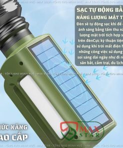 ✔ ƯU ĐIỂM LỚN: sạc tự động qua tấm thu năng lượng mặt trời, phục vụ tốt cho nhu cầu soi sáng gia đình và công việc dài ngày ở những môi trường không có điện hoặc các ngày mất điện.