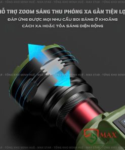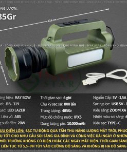 Đèn pin cầm tay siêu sáng RAY BOW RB 319 Zoom sáng gom tỏa xa gần, pin dung lượng cao, sạc năng lượng mặt trời GD224