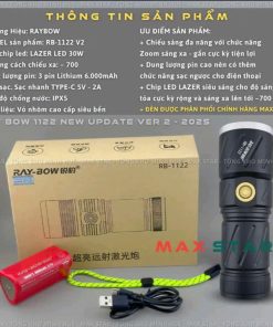 ĐÈN PIN CẦM TAY SIÊU SÁNG RAYBOW 1122 CHIẾU XA 500M 30W ZOOM XA GẦN CHỐNG NƯỚC SẠC NGƯỢC ĐIỆN THOẠI GD238