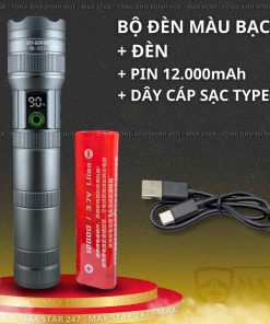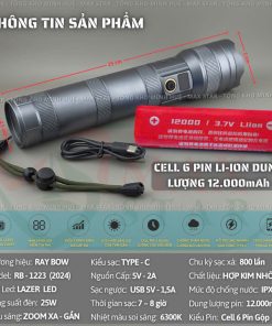 Đèn pin cầm tay siêu sáng RAYBOW 1223 pin siêu trâu 12000mAh soi gom tỏa xa gần chống nước vỏ nhôm chất lượng cao GD226