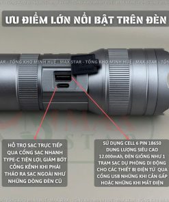 ✔ Ưu điểm lớn nổi bật trên đèn: Hỗ trợ sạc trực tiếp qua cổng sạc nhanh type-c tiện lợi, giảm bớt cồng kềnh khi phải tháo ra sạc ngoài như những dòng đèn cũ sử dụng cell 6 pin 18650 dung lượng siêu cao 12.000mah, đèn giống như 1 trạm sạc dự phòng di động cho các thiết bị điện tử qua cổng usb những khi cần gấp hoặc những khi mất điện ✔ Công suất 22w cho cường độ ánh sáng cao