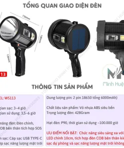 ✔ Là phiên bản cải tiến của W591 đã rất HOT trên thị trường, đèn pin cầm tay siêu sáng W5113 có những cải tiến vượt trội hơn cho người dùng: