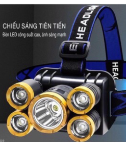 Đèn Pin Đội Đầu Mini 5 Bóng Siêu Sáng Kèm 2 Pin, Dây Sạc