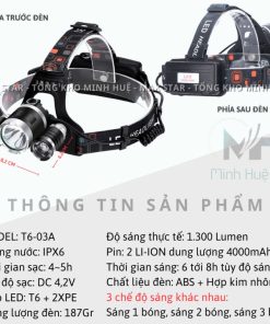 ✔ Đèn pin siêu sáng đội đầu 3 bóng T6 là lựa chọn lý tưởng cho những ai yêu thích phiêu lưu và hoạt động ngoài trời. Với công nghệ LED tiên tiến, đèn pin này có độ sáng lên đến 1300 lumens, cho khả năng chiếu sáng xa tới 200m, đồng thời có 4 chế độ sáng linh hoạt để bạn dễ dàng điều chỉnh theo nhu cầu sử dụng.