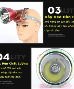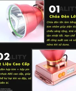 Đèn pin đội đầu siêu sáng 500W chiếu xa 500m, chống nước, pin trâu sử dụng 8-10 tiếng, đèn đội đầu A9 chóa lớn 10CM