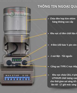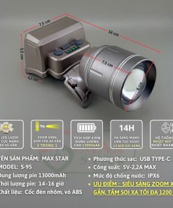 Đèn pin đội đầu siêu sáng MAX STAR S95 zoom sáng xa gần công suất 42W soi xa 1200 mét, Đèn đội đầu pin trâu GD216