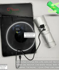 ✔ Với 3 viên pin liền loại LITHIUM dung lượng lớn, đèn có chức năng sạc ngược cho điện thȯại, quạt tích điện hoặc tai nghe..vv