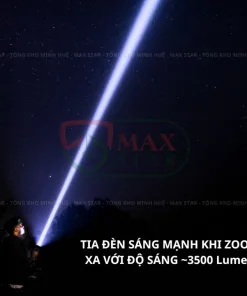 ✔ Đèn pin chính hãnġ MAX STAR có độ sáng 3400 Lumen khi ở chế độ gom.