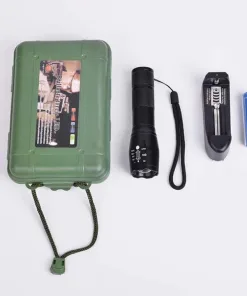 – Đèn pin led T6 E5 hỗ trợ tối đa cho việc du lịch với 2 lựa chọn pin sạc & pin rời (3 viên AAA). Kèm theo đèn pin là bộ sạc gồm pin sạc, đế sạc & chuẩn