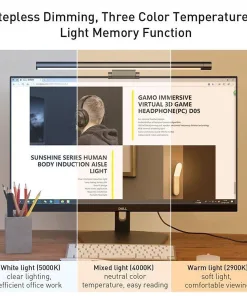- Có 3 loại ánh sáng với dải màu khác nhau: Trắng 5000K, Trung tính 4000K, Ấm 2900K phù hợp với mọi nhu cầu sử dụng của người dùng: Từ làm việc cho đến đọc sách, học tập, chơi game