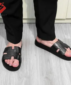 Phần quai dép được làm từ da bò thật, cách điệu chữ H thời thượng, lên chân cực kì sang trọng và thanh lịch.
