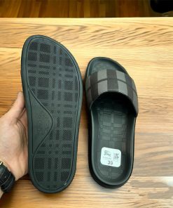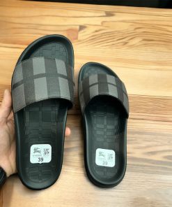 Tên sản phẩm: DÉP DA NAM BURBERRY QUAI SỌC NÂU CAO CẤP, MẪU MỚI 2024