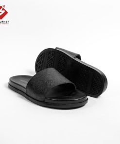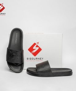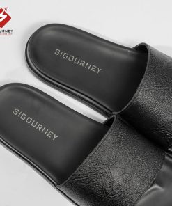 Dép Nam Quai Ngang Da Bò SIGOURNEY Màu Đen Có Khâu Đế Chắc Chắn DN118