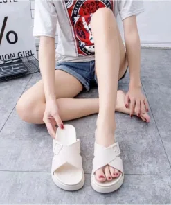 Tên sản phẩm: DÉP NỮ QUAI CHÉO, ,ĐẾ CAO 5CM, SIÊU ÊM, LÊN CHÂN SANG CHẢNH- HAANH