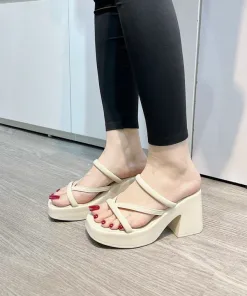 Kiểu dáng: HỞ mũi tròn, gót vuông.