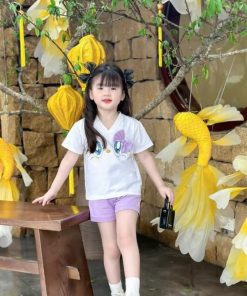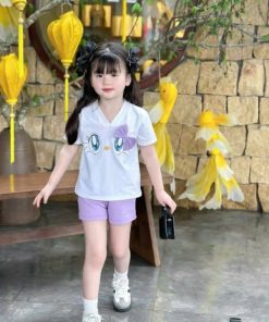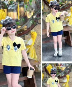 ĐỒ BỘ ÁO THUN CÓ NƠ QUẦN SHORT THOẢI MÁI MÁT MẺ CHO BÉ GÁI MÙA HÈ
