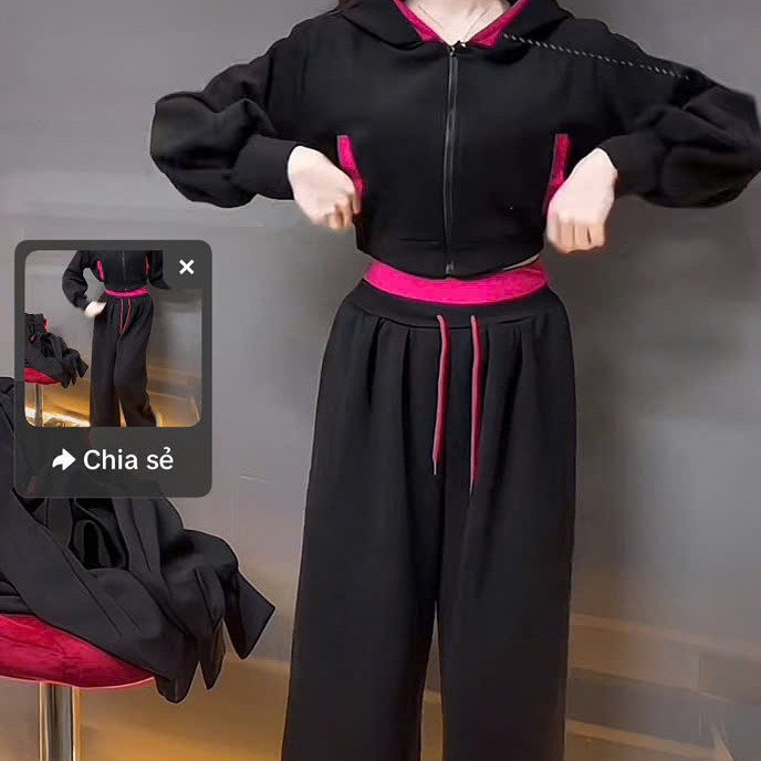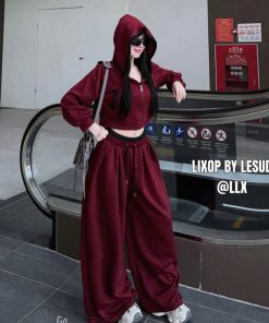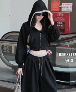 Đồ bộ hoodie croptop nữ là lựa chọn hoàn hảo cho những cô nàng yêu thích phong cách trẻ trung – năng động – cá tính. Set đồ gồm áo hoodie croptop có mũ, khóa kéo kết hợp cùng quần ống rộng cạp cao, thiết kế đồng bộ giúp tổng thể outfit gọn gàng, thời trang và cực kỳ tôn dáng.