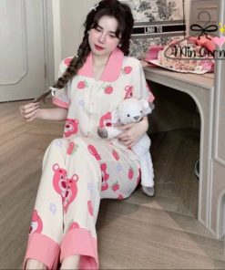 🍀 Thiết kế: kiểu dáng pijama tay ngắn quần dài đơn giản không quá cầu kỳ nhưng vẫn cực kỳ dễ thương và thoải mái không gò bó khi vận động.