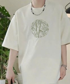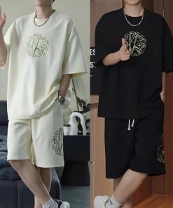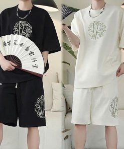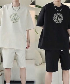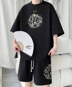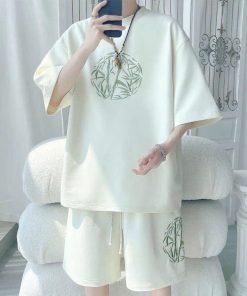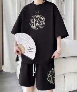 Tên sản phẩm: ĐỒ BỘ NAM VẢI THUN DA CÁ MỀM MỊN IN HÌNH TRÒN CÀNH TRÚC TP49 – GOLDEN DREAM
