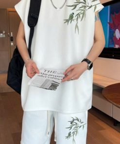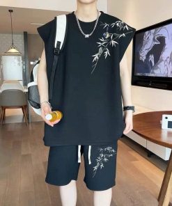Tên sản phẩm: ĐỒ BỘ NAM VẢI THUN DA CÁ MỊN ÁO BA LỖ IN HÌNH CÀNH TRE TP90 – GOLDEN DREAM