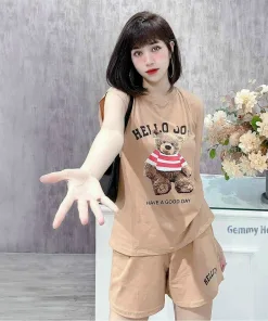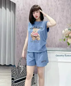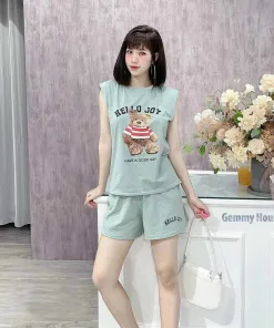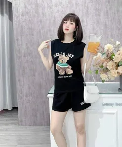 Đồ Bộ nữ Sát Nách Chất Cotton In Hình Gấu Siêu Dễ Thương Phù Hợp Mặc Nhà Đi Chơi Đều Đẹp – HTM Fashion
