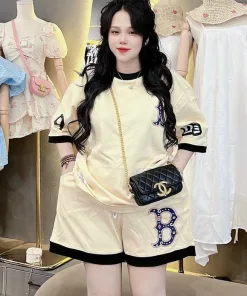 Tên sản phẩm: ĐỒ BỘ NỮ VẢI THUN COTTON XỊN XÒ IN NỔI CHỮ B LỚN FORM RỘNG SIÊU ĐẸP TP20 – GOLDEN DREAM