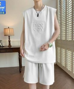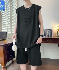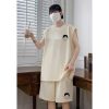 Đồ Bộ Quần áo Nam Ba Lỗ Sát Nách mùa hè cộc tay mặc ở nhà họa tiết kẻ viền in dập nổi Bộ Đùi Nữ tập gym yoga bóng chày chất thun lạnh.