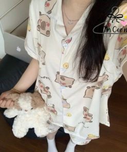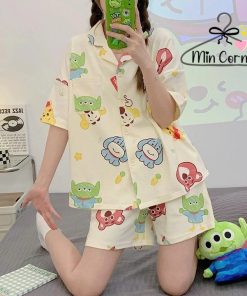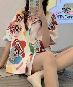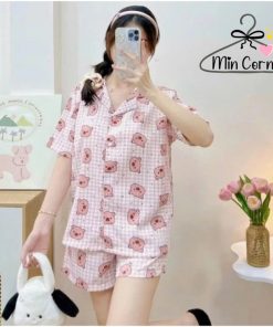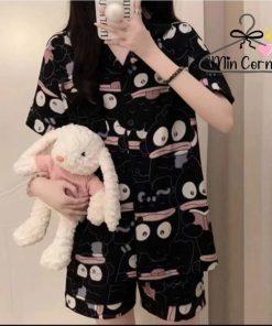 👉 Đồ ngủ nữ pijama mặc nhà cho nữ set bộ đồ ngủ pijama bộ ngủ nữ cộc tay quần đùi in hoạt hình dễ thương mùa hè