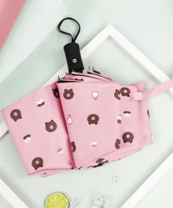 Ô Dù Gấp Gọn Hình Gấu Brown – Vải 3 Lớp Chống Tia UV