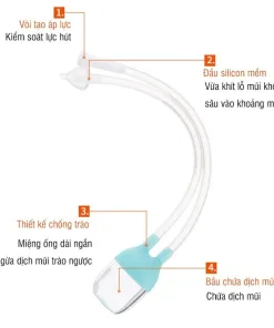 Sản phẩm có thiết kế độc đáo với ống bóp silicon hút mũi dễ dàng vào bầu chứa theo cơ chế chống trào ngược đảm bảo vệ sinh. Đầu hút đưa vào mũi bé nhỏ gọn, nhằm tránh làm tổn thương lên viêm mạc của trẻ, không gây đau. Đầu bóp rỗng, thuận tiện và dễ dàng thao tác, bạn có thể tùy chỉnh lực mạnh, yếu sao cho phù hợp với bé.