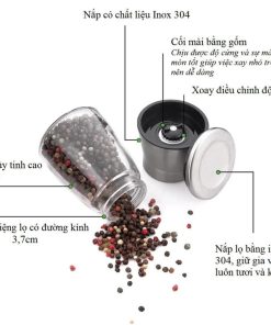 🔸 Kiểu dáng nhỏ gọn, sang trọng, thân bằng thủy tinh trong suốt, nắp inox, thiết kế đậy kín kết hợp chức năng xay nhuyễn và rắc tiêu.