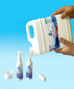 - Rót dung dịch trong can 2 lít vào 2 chai xịt nhỏ 50ml rỗng đi kèm