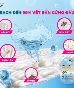 – Làm sạch mạnh mẽ các vết bẩn cứng đầu như bùn đất, vết thức ăn, vết mực,… bám chặt trên quần áo với 5 KHÔNG hóa chất gây hại, đảm bảo an toàn cho làn da