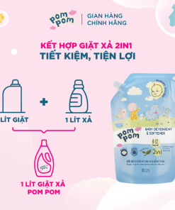 GEL GIẶT XẢ ĐẬM ĐẶC 2IN1 POMPOM NEWBORN CHUYÊN DÙNG CHO BÉ SƠ SINH SẠCH SÂU – KHÁNG KHUẨN – KHỬ MÙI NÔN TRỚ, ỌC SỮA, TÈ KHAI-LƯU HƯƠNG PHẤN THƠM DỊU NHẸ – TÚI 2.7L
