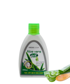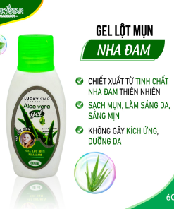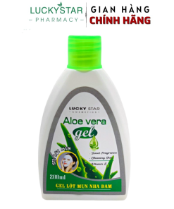 - Gel lột mụn Nha Đam Aloe Vera Lucky Star với tinh chất nha đam thiên nhiên làm sạch bã nhờn từ sâu bên trong lỗ chân lông, làm sạch lượng dầu thừa, hạn chế hình thành mụn, và loại bỏ đi mụn cám mới khi hình thành.