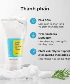 – Gel rửa mặt COSRX Good Morning độ pH thấp chứa 0.5% BHA giúp làm sạch da nhẹ nhàng, không gây kích ứng da