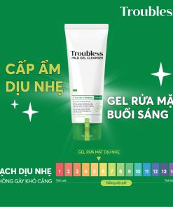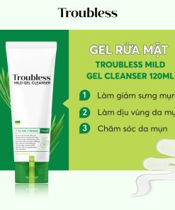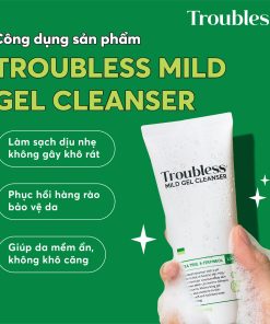 Sữa rửa mặt tạo bọt Troubless Mild Gel Cleanser mang đến công dụng chính: làm thông thoáng lỗ chân lông, loại bỏ dầu thừa và xử lý các khu vực da gặp vấn đề để nhằm giúp da mịn màng, mềm mại hơn.