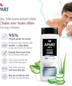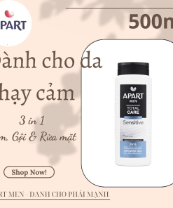 Mô tả sản phẩm: Gel tắm nam Apart Men chăm sóc toàn diện 3 trong 1 500ML nhẹ nhàng làm sạch cơ thể, lấy đi bụi bẩn, bã nhờn trên da, mang lại độ dưỡng ẩm mịn màng tránh để làn da khô ráp, nứt nẻ. Hương thơm nam tính sẽ lưu lại trong nhiều giờ. Công thức thuần chay, thành phần tự nhiên, an toàn cho da.