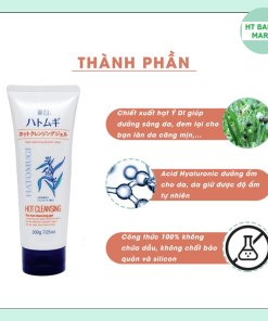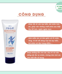 Gel tẩy trang nóng Hatomugi – Hatomugi Hot Cleansing Gel chứa chiết xuất hạt Ý dĩ là dòng sản phẩm đó. Giúp làm sạch sâu bụi bẩn và các lớp trang điểm, mang đến một làn da thoáng sạch, mịn màng.