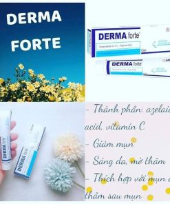- Gel trị mụn Derma forte có chứa thành phần phần Azelaic acid, đây là một acid dicarboxylic có nguồn gốc từ các loại ngũ cốc. Bằng cách ức chế sự sừng hóa của da, Azelaic acid có tác dụng điều trị mụn trứng cá từ mức độ nhẹ đến trung bình. Ngoài ra, Azelaic acid có khả năng làm giảm số lượng vi khuẩn P. acnes và tụ cầu – nguyên nhân gây mụn trên da, từ đó, giúp lỗ chân lông không bị bít tắc gây mụn, tình trạng mụn trứng cá được cải thiện rõ rệt.