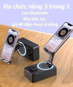 Đa chức năng 3 trong 1, nó vừa là giá đỡ điện thoại di động, cũng là âm thanh Bluetooth, vừa là sạc pin, nghe nhạc sử dụng kết nối Bluetooth điện thoại di động hoặc sử dụng USB.