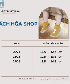 - Size 24/25: Chiều dài chân bé là 13.5-14.5cm (18-24 tháng, 10-12kg).