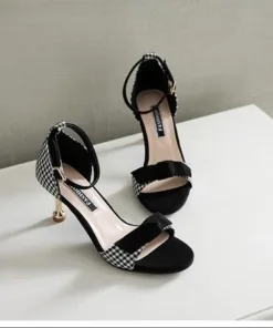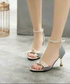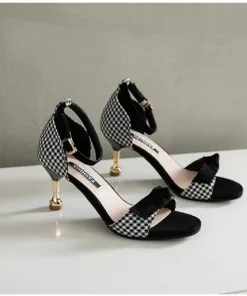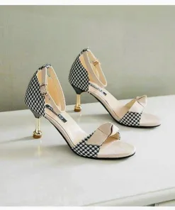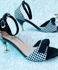 GIÀY CAO GÓT NHỌN 7 PHÂN QUAI BẢN CHÉO CARO KẾT NƠ SH1001- SAM STORE