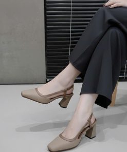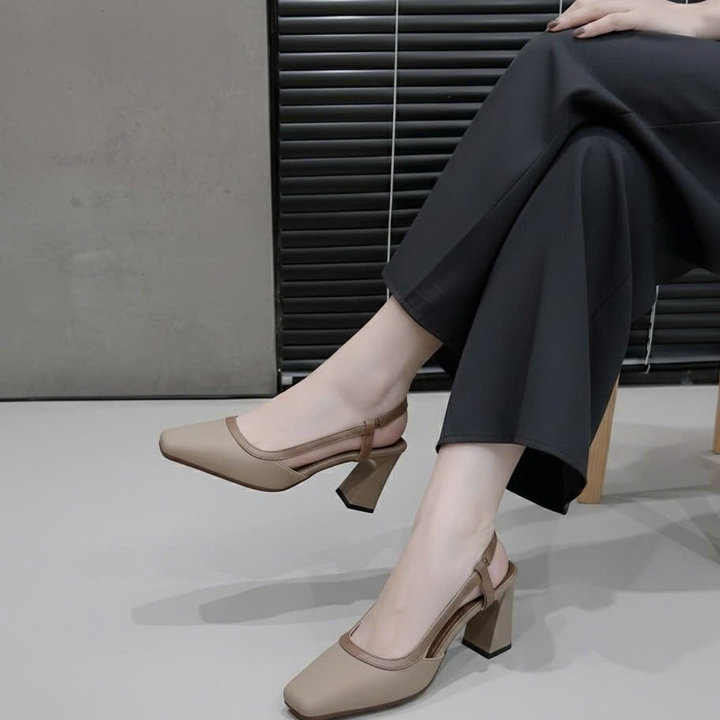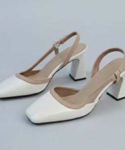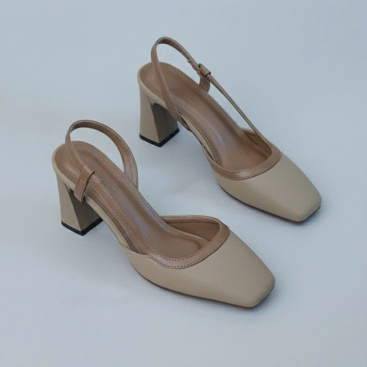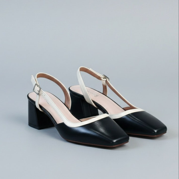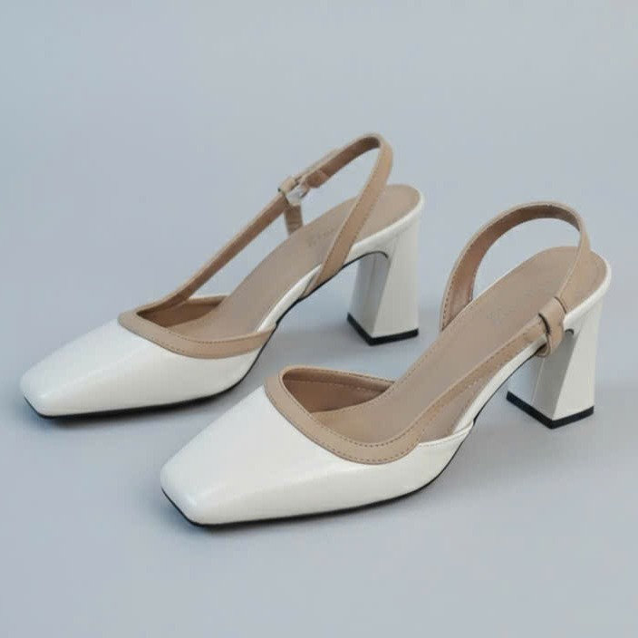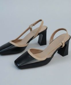 Tên sản phẩm: Giày dép sandal cao gót mũi vuông hở mũi gót vuông mix màu thanh lịch – Moon shop