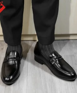 Giày lười tăng chiều cao nam SIGOURNEY SIG38 có thiết kế cổ điển với màu đen bóng sang trọng, dễ mang, dễ phối đồ, mang đến vẻ sang trọng và chỉn chu cho người mang.